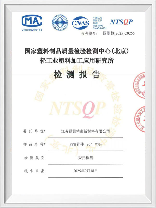 磊霆PPH管件国检报告2025