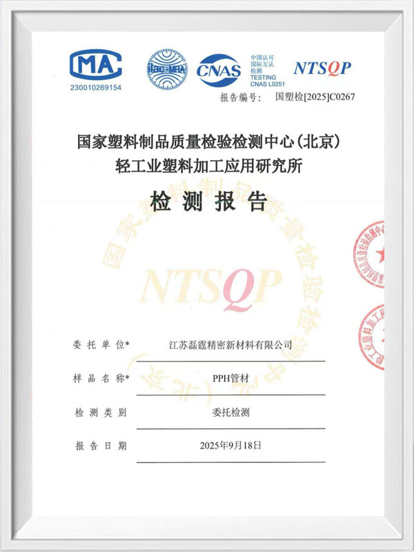 磊霆PPH管材国检报告2025